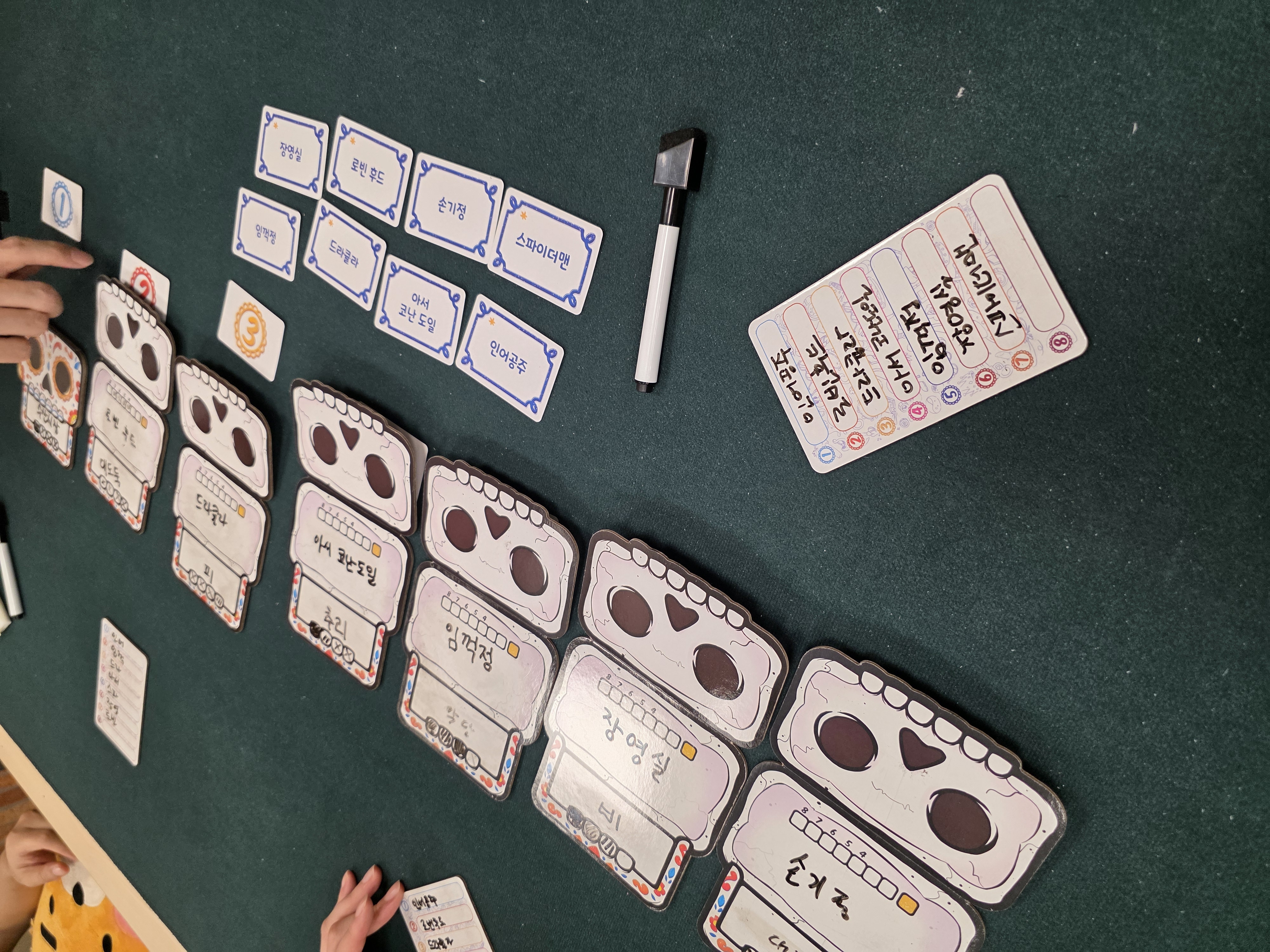 한명이라도 틀리면 번호에 맞춰 뼈다구를 잃는다.