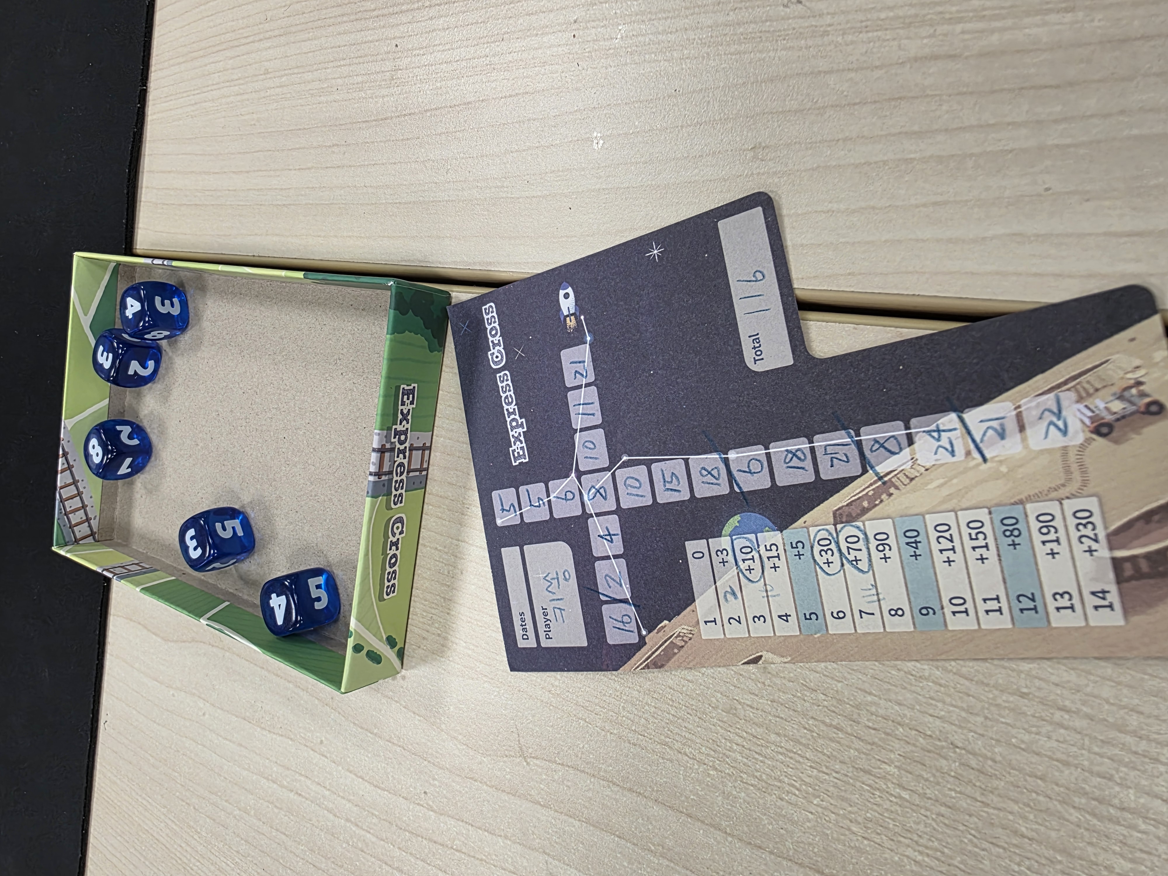 주사위가 5개 있는데 1~5, 그리고 8 숫자가 써 있다.